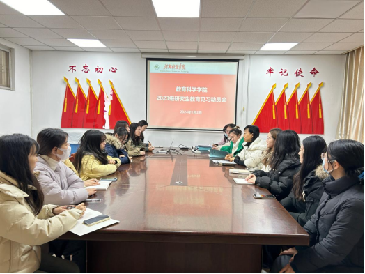 1月2日下午,我院2023级研究生教育见习动员会在0号楼1008会议室召开,教育管理领域和学前教育领域的14名研究生全部参会,同时参会的还有研究生秘书助理张馨元老师,会议由副院长高佳主持。