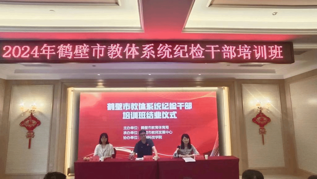 5月16日下午,由河南科技学院教育科学学院承办的2024年鹤壁市教体系统纪检干部培训班结业仪式在贵州省遵义市举行。鹤壁市教育体育局党组成员、市纪委监委驻市教体局纪检组组长赵文昌,教育科学学院院长、高等教育研究所所长李小丽,副院长高佳以及来自鹤壁市教体系统的58名纪检干部出席会议。会议由高佳主持。