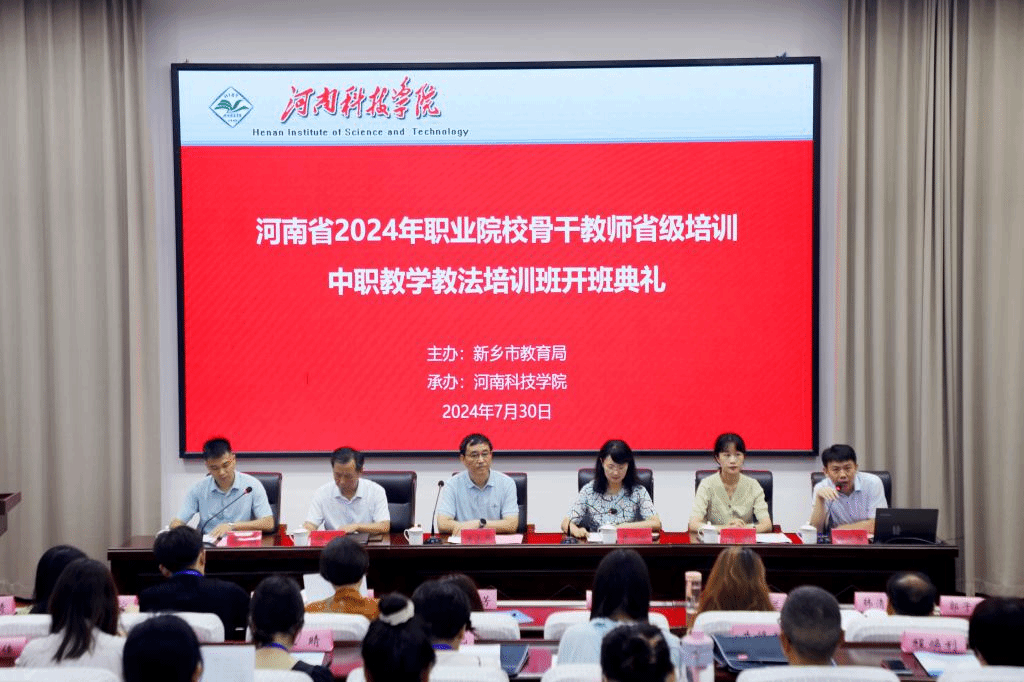 7月30日上午,由新乡市教育局主办、河南科技学院承办2024年河南省职业院校骨干教师教学教法省级培训班在新乡市委党校举行开班典礼。新乡市教育局党组成员、副局长王志华,新乡市教育局四级调研员何剑、职成教科科长吴桐,我校教育科学学院院长李小丽、副院长王晶,教育培训中心副主任姚建国以及新乡市区、县中等职业学校80名教师参加开班典礼。开班典礼由姚建国主持。