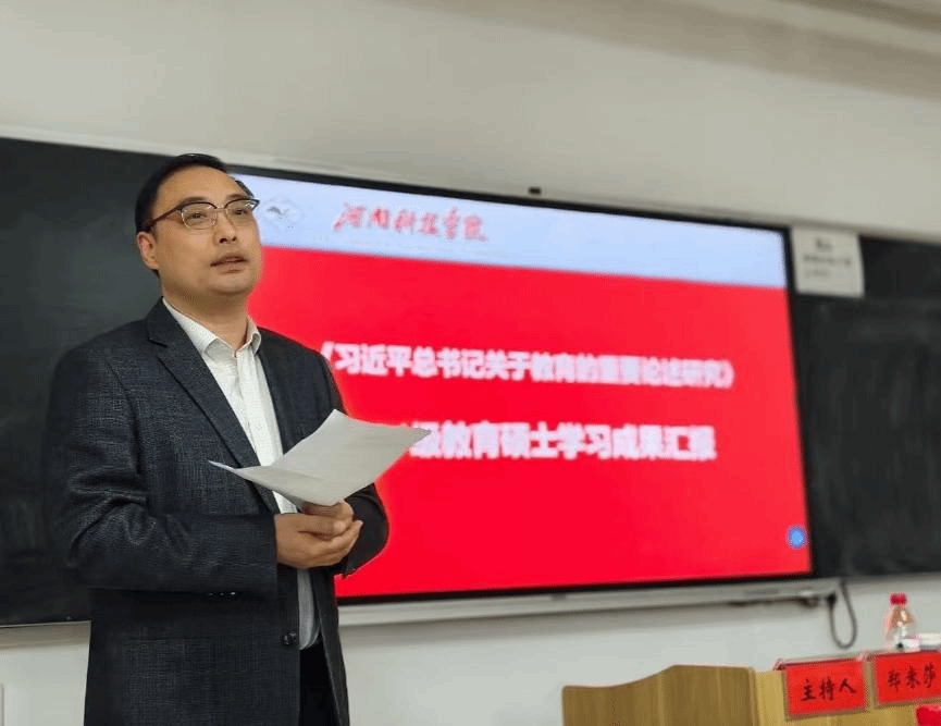 11月4日下午,教育科学学院在新东区弘毅楼A304举行《习近平总书记关于教育的重要论述研究》专题学习成果展示汇报。研究生处副处长赵新亮,教育科学学院院长、高等教育研究所所长李小丽,校研究生督导专家、服装学院副院长王式竹,教育科学学院副院长高佳,研究生秘书李会文,课程主讲人刘秋云以及2024级教育硕士全体研究生参加会议。汇报会由2024级学前教育领域研究生、新乡市市直一幼幼儿园副园长郑米莎主持。