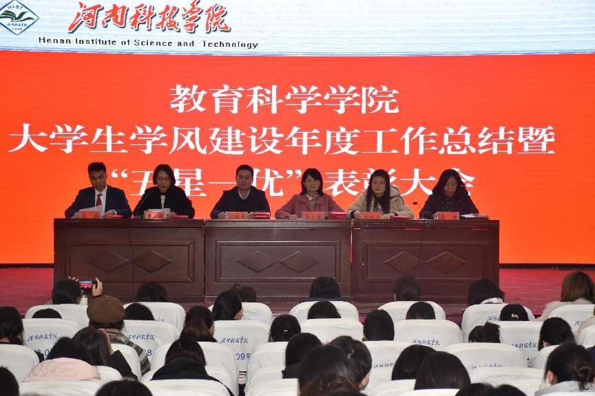 12月5日下午,教育科学学院在图教201会议室召开大学生学风建设年度工作总结暨“五星一优”表彰大会。教育科学学院党政班子成员出席会议,各党支部书记、教研室主任、班主任、各年级辅导员、各班班委及学生代表、“五星一优”表彰人员共200余人参加会议。会议由副院长王晶主持。