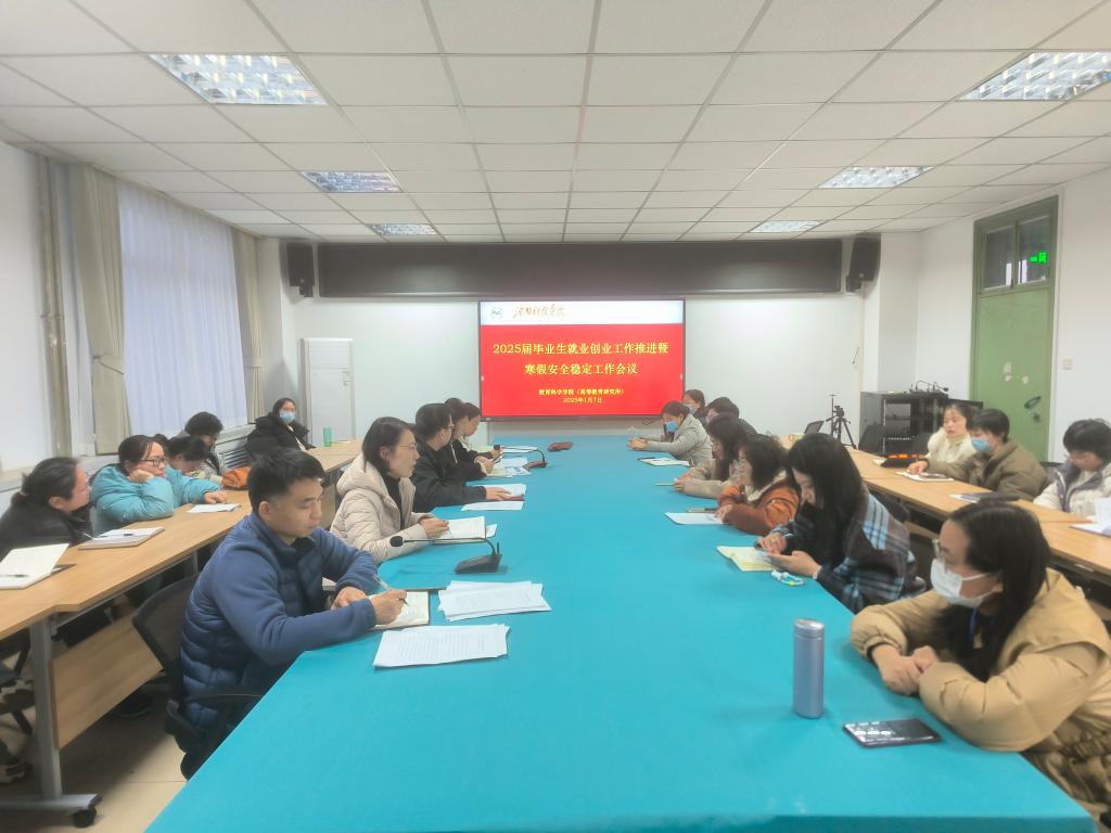 1月7日下午,教育科学学院在0号楼906会议室召开2025届毕业生就业创业工作推进会议。学院党政班子成员、全体教师参加会议。