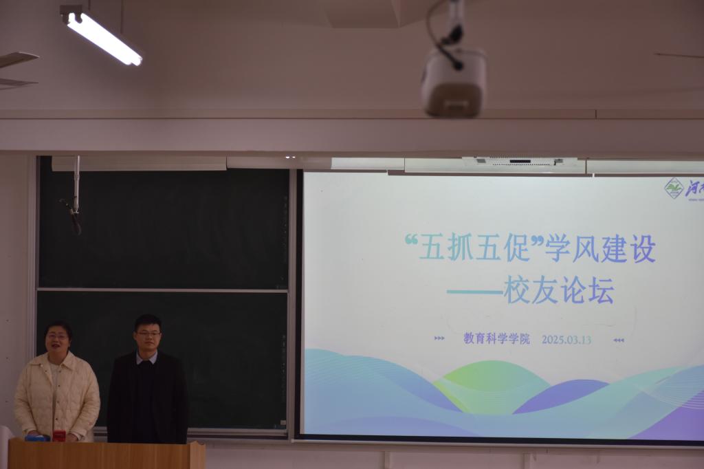 为深入推进学院“五抓五促”学风建设工作,发挥榜样示范引领作用,厚植优良学风根基,3月13日下午,教育科学学院在弘毅楼合一教室举办春季校友论坛。邀请优秀校友代表,现任河南师范大学教育学部校聘副教授李贞义主讲。学院150余名本科生参加活动。活动由副院长刘秋云主持。