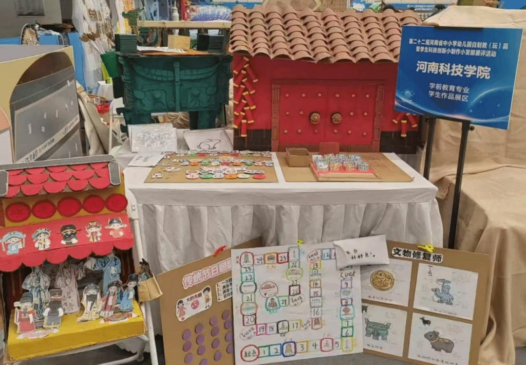 我校学生团队携原创系列作品《趣玩华夏文化院》参加展评活动。作品秉持绿色环保理念,以“传统文化+幼儿教育”的创新融合设计,打造了“童趣益智屋”“趣演小天地”“魔法小鼎”三大沉浸式主题场景,展现了新时代师范生的创新智慧与教育情怀。
