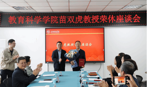 会上,教育科学学院党委副书记李鹏介绍苗双虎基本情况,宣读荣休通知;胡铁柱为苗双虎颁发荣休证书和纪念品;青年教师向苗双虎献花。与会人员分享与苗双虎相处的点点滴滴,言语中充满敬重与不舍。苗双虎发表荣休感言,表达对大家的感谢,以及对学校的深深眷恋与殷切期望。