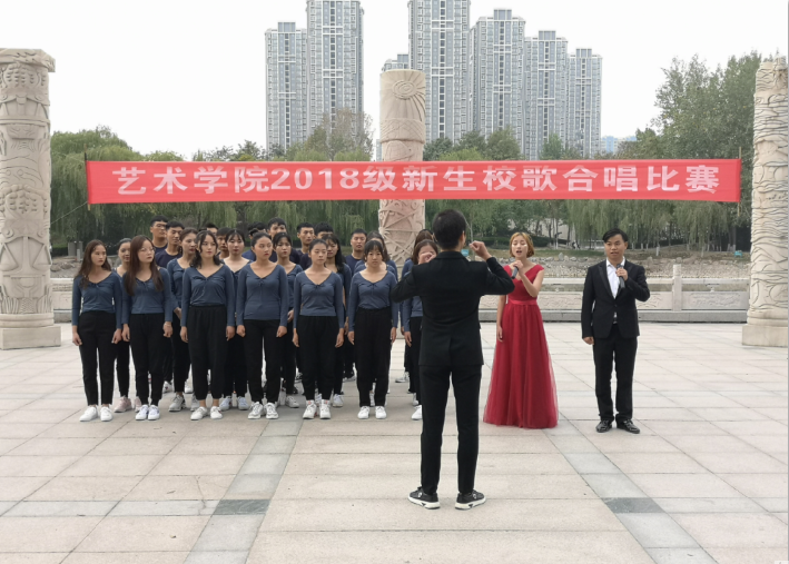 为激发同学们爱校、荣校的情感,增强新生班级凝聚力,10月20日下午,艺术学院在图书馆北广场举办了2018级新生校歌合唱比赛。本次合唱比赛由艺术学院团委学生会举办,2018级全部新生班级参加了此次比赛。
