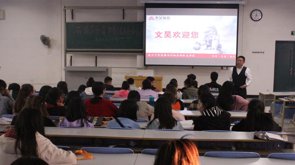 11月13日,浙江义乌文昊教育集团在十号楼合八教室召开专场招聘会,艺术学院近200余名2018届毕业生及其他年级学生代表参加了此次招聘会。 会上,文昊教育集团负责人介绍了文昊教育集团的基本情况、核心理念及师资队伍等,重点宣讲了文昊集团的发展方向及未来规划,明确了该集团所需专业人才类型及薪资待遇等,使求职学生对文昊集团有了更深层次的了解。 文昊集团优秀教师、艺术学院2017届毕业生魏振康也亲自返校向学弟学妹们分享求职就业经历,鼓励大家树立正确的就业观,不断积累实践经验,积极把握就业机遇。