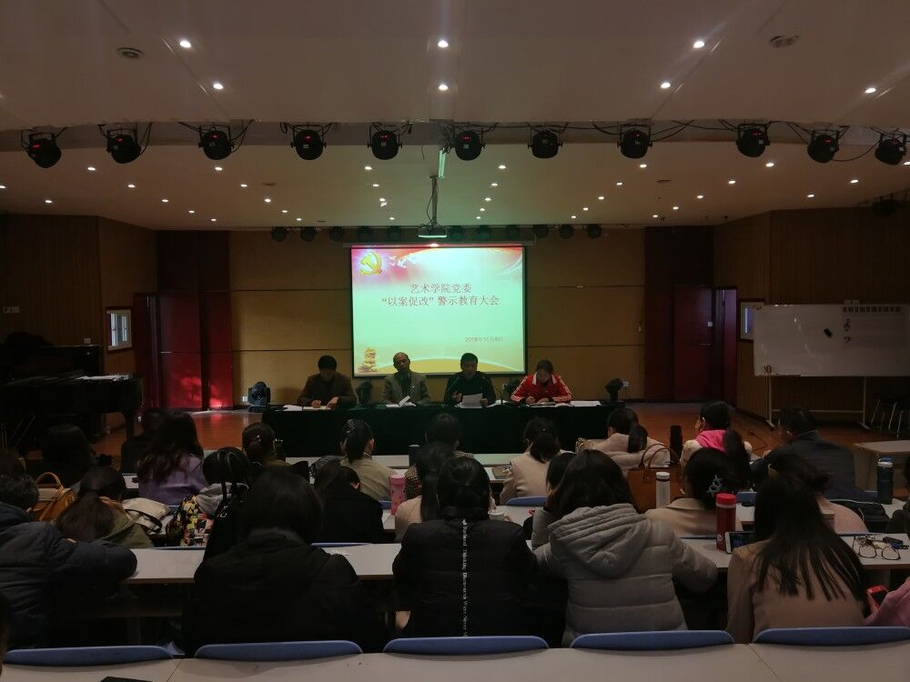 为贯彻落实校党委《关于推进以案促改制度化常态化的通知》(校党字[2018]88号)和校纪委《关于强化警示教育认真组织学习以案促改典型案例的通知》(校纪字[2018]14号)文件精神,11月8日,艺术学院在11号楼合一音乐厅召开“以案促改”警示教育大会,艺术学院党政领导班子成员、全体教工50余人参加了会议。