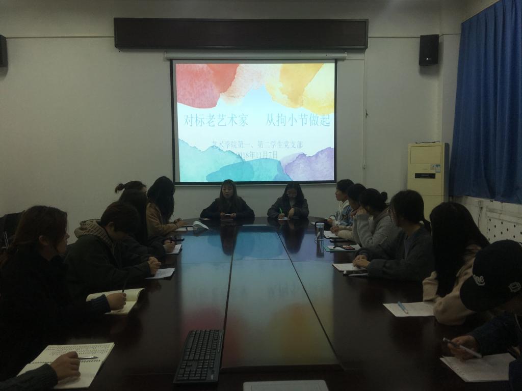 为进一步贯彻落实十九大精神,强化学生党员党性修养,11月7日,艺术学院第一、第二学生党支部在11208会议室举办“对标老艺术家 从拘小节做起”主题党日活动,艺术学院学生党员40余人参加了此次会议。