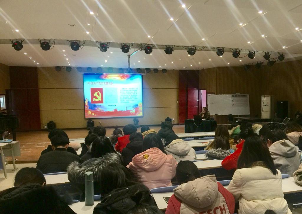 为深入学习贯彻习近平新时代中国特色社会主义思想,铭记革命年代的历史,进一步加强入党积极分子对党的理解,12月26日下午,艺术学院在11合一音乐厅举办了以《用艺术之笔,绘制党的光辉与希望》为主题的特色党课。党课由学生预备党员、学生会心理部部长杨启月主讲,入党积极分子共计40余人参加了此次特色党课。
