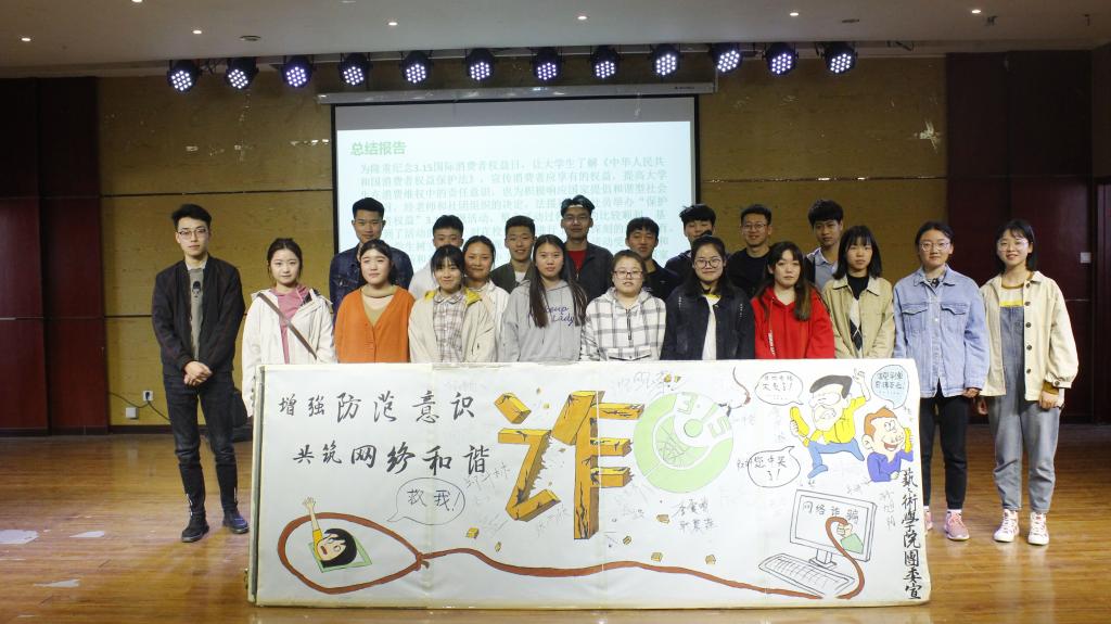 为深入宣传大学生防诈骗知识,增强维权意识,营造和谐校园。3月15日上午艺术学院在十一合一音乐厅举办以“增强防范意识,共筑网络和谐”为主题的3·15消费者权益保护活动,艺术学院团委学生会部分学生干部及2018级各班学生代表共计50余人参加此次活动。