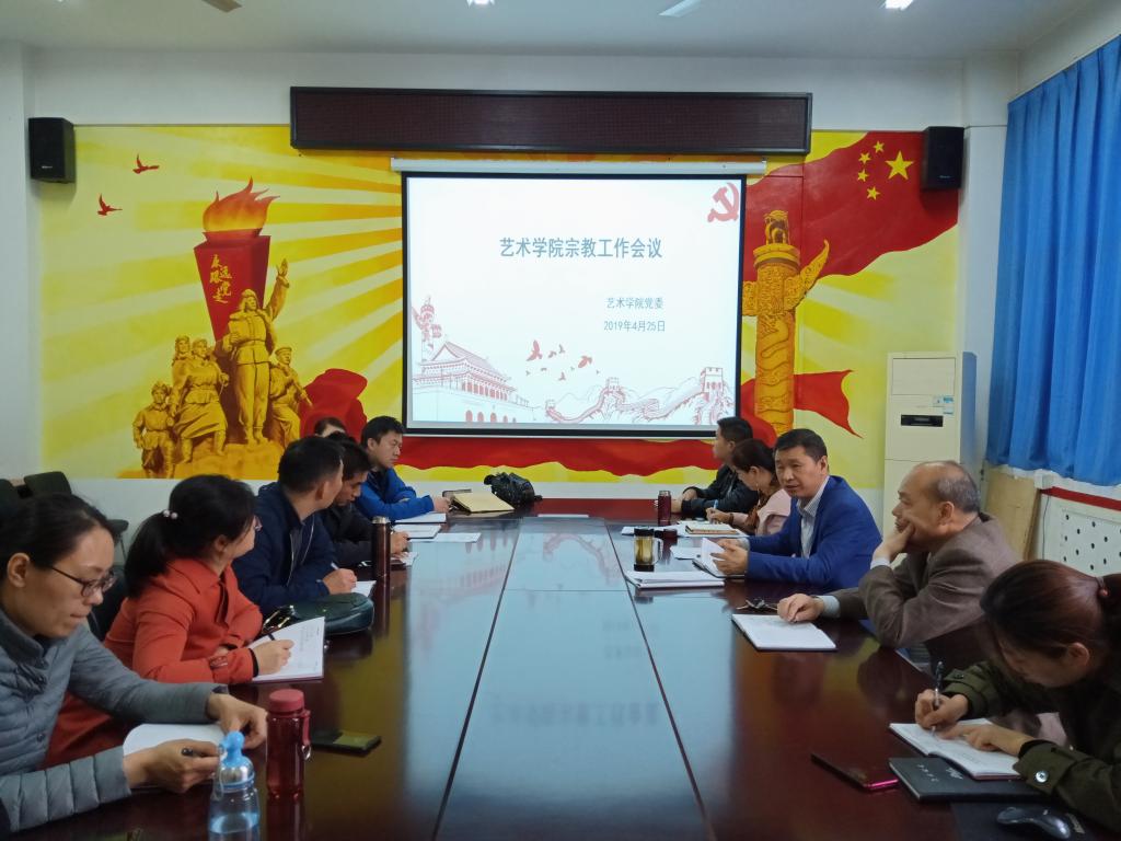 4月25日下午,艺术学院宗教工作会议在11208会议室召开。艺术学院党委委员、党支部书记、办公室主任、研究生秘书、科研秘书、教学秘书及系主任等参加了会议。会议由艺术学院党委书记张玉新同志主持。