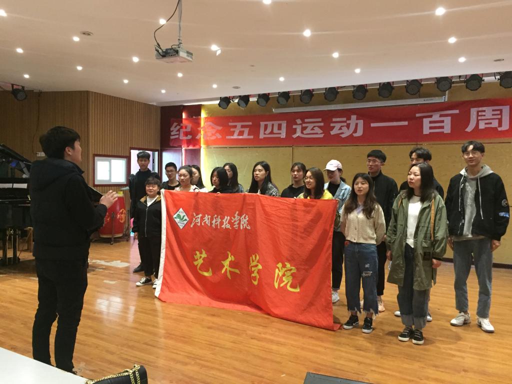 在“五四运动”一百周年来临之际,为弘扬“五四精神”,培养爱国主义情怀,引导学生党员及青年学生继承和发扬革命精神, 4月29日中午,艺术学院党委音乐与舞蹈系学生党支部举行了“纪念五四运动一百周年——齐颂五四 青春礼赞”党日活动,由音乐与舞蹈系学生党支部宣传委员王赛博、学生党员邢明军带领大家学习并演唱了经典歌曲《歌唱祖国》与中国共青团团歌《光荣啊,中国共青团》,艺术学院学生党员及青年学生共计60余人参加了此次党日活动。
