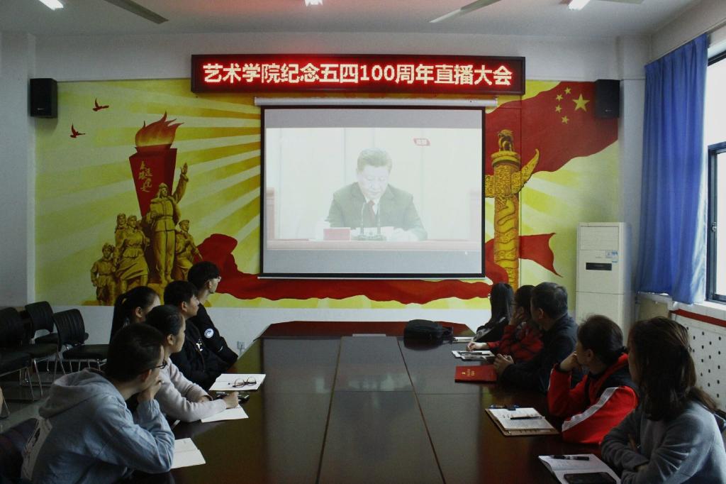 为纪念五四运动100周年,弘扬五四精神, 4月30号上午,艺术学院在11208会议室组织收看“纪念五四运动100周年大会”直播,艺术学院党委书记张玉新、党委副书记徐小玉、辅导员、学生党团员代表共近40余人参加了本次活动,此外,学院师生还利用教室、宿舍等不同场地集中或分散观看收听直播。