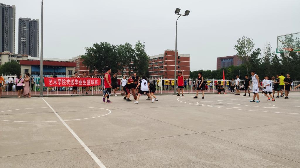 为做好毕业生的教育引导,欢送毕业生安全、文明离校,6月4日下午,艺术学院在西区篮球场举行欢送毕业生篮球赛,艺术学院党委书记张玉新、党委副书记徐小玉、团委书记刘凤、正科级辅导员左玉含及艺术学院学生50余人观看和参加了本次比赛。
