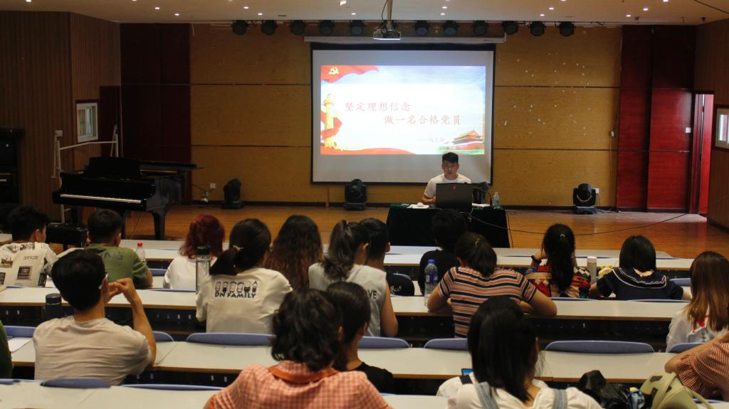 为深入贯彻学习党的十九大精神,加强学生党员对新时代党的建设工作的理解。6月11日中午,艺术学院在十一合一音乐厅举办了以“坚定理想信念,做一名合格党员”为主题的第二十八期特色党课活动,本次特色党课由学生党员商志强主讲,艺术学院学生党员及入党积极分子共计60余人参加。