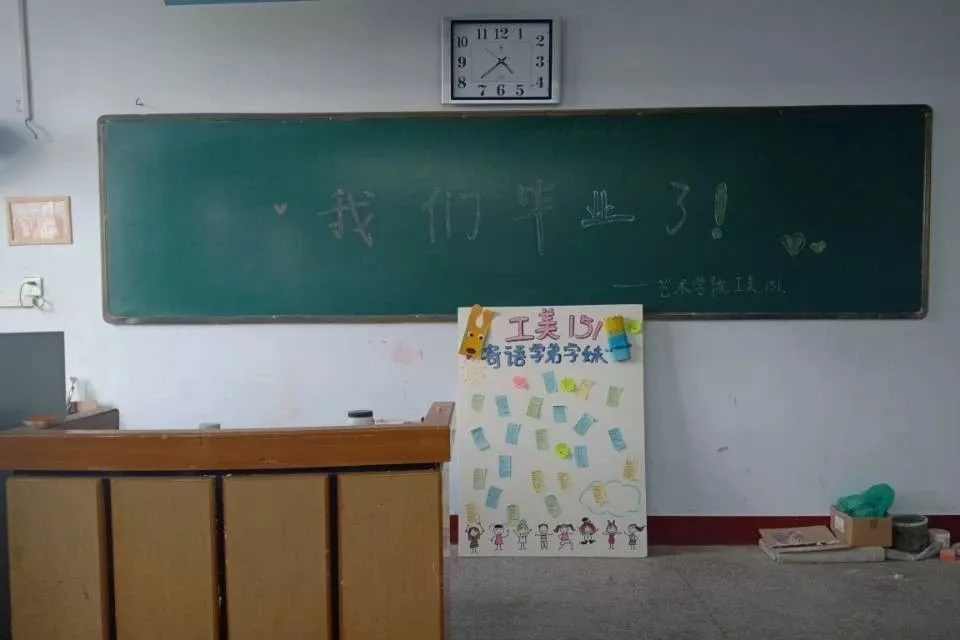 正值毕业季酷热时节,在大家都收拾行囊准备离校之时,艺术学院毕业生们在各班党员干部的带领下早早准备好清洁用具,挽起衣袖,擦桌、扫地、擦黑板……,进行专业固定教室、宿舍清扫工作。薄汗从额头上划过,教室被打扫的明亮整洁,明媚如初,整个过程分工明确、配合默契,没有毕业生的焦虑、压力和情绪,展现出的是艺术学子的良好文明风尚。干净的教室未免单调,毕业生们在每一间专业教室都精心设计手写“寄语学弟学妹”赠言卡片,把大学一路走来的经验、坎坷和感悟告诉学弟学妹们,希望他们在未来的大学四年里,尽快确定奋斗目标、做好人生规划、刻苦学习、勇敢成长。毕业季的象牙塔里飘荡着离愁别绪,青春之花曾在此热烈绽放,美好的他们也要把美好留给母校,要把文明温暖的接力棒稳稳地交给下一届的学弟学妹。