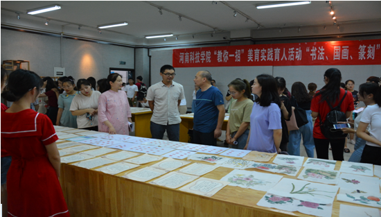 本次活动展示了书法、篆刻及国画3个项目11个班级的部分作品共200余幅。展示现场聘请了美育实践育人活动各项目的指导教师和艺术学院的专业骨干为学员们进行了作品点评和打分,指出同学们的优点、不足及下一步努力的方向,得到了同学们的一致好评。