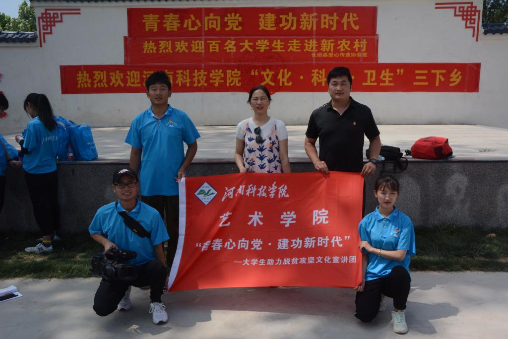 为引领教育广大青年学生切实感受新中国成立70周年来取得的巨大成就,深入了解乡村振兴战略,以实际行动响应打赢脱贫攻坚战的号召。7月7日起,河南科技学院艺术学院“青春心向党,建功新时代”——大学生助力脱贫攻坚文化宣讲团,在党委副书记徐小玉、辅导员陈晓华的带领下,赴新乡市长垣县云寨、官路西、上官村、高店村等多地,深入调查研究,用心感受乡村变化,助力乡村振兴。