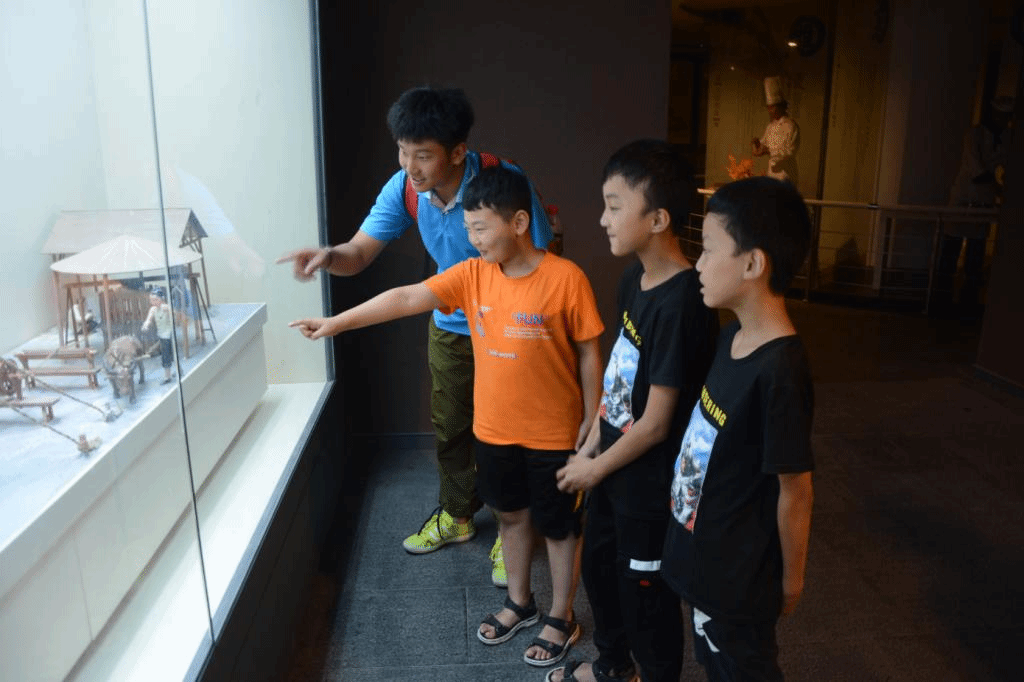 7月8日,中华传统文化宣讲团赴长垣县中国烹饪文化博物馆进行参观讲解活动。活动开始前实践队员们进行了小组参观及讨论。并且认真分配任务确认讲解重点。对于博物馆展品尚不了解的地方,实践队员们向博物馆的专业解说员进行了交流请教,确保面对孩子们,讲解内容准确无误。随后实践队员们进行了试讲演练,并根据队员们互相提出的意见和建议,进行了讲解修正。面对可爱的孩子们,实践队员们打起了十二分的精神,“在封建社会,我们作为一个以农耕文明为主的社会,牛作为最主要的劳动工具,是受到国家保护的。”实践队员讲道,“那古代人是不是就不能吃牛肉啦?”孩子们纯真的话语让实践队员们紧张的内心稍稍放松下来。实践队员们通过实物讲解及参观讨论的方式,向孩子们讲解了烹饪文化的历史发展、表现形式以及其中蕴含的历史内涵,使孩子更加深入地了解了不一样的中华文化。活动结束后,孩子们纷纷感叹中华文化博大精深。