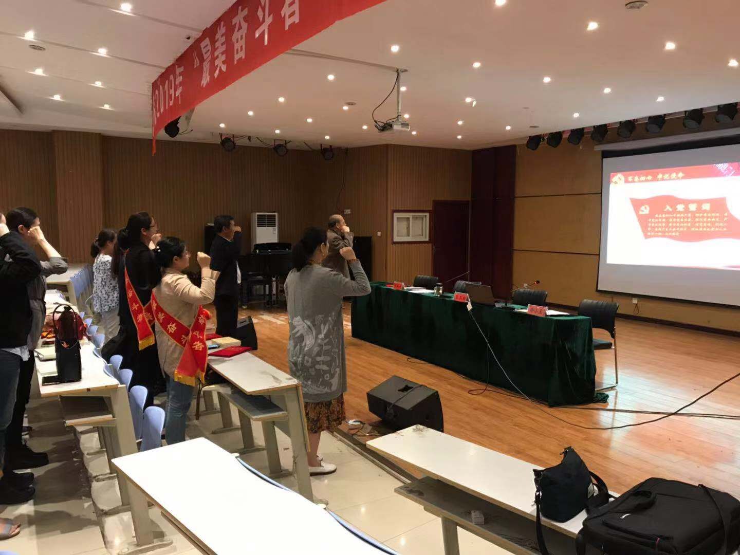接着,全体人员在艺术学院院长、老党员张新词同志的带领下进行重温入党誓词活动。