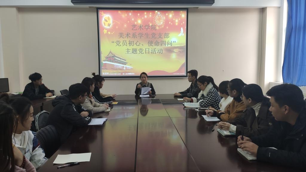 为推进“不忘初心、牢记使命”主题教育的深入开展,引导全体党员初心不改、使命在肩、主动作为,根据学院 “不忘初心、牢记使命”主题教育工作要求,11月21日,艺术学院各党支部积极开展党员“初心使命四问”主题党日活动。