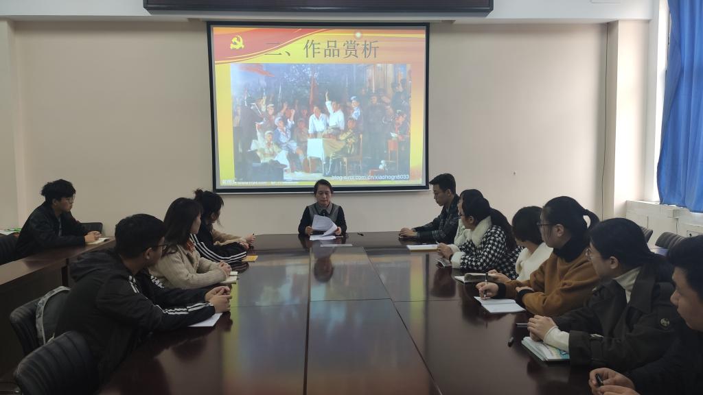 11月22日,艺术学院在11208会议室举办第33期“解读红色经典”特色党课,艺术学院美术系学生党支部书记刘凤及支部全体学生党员共30余人参加了活动。