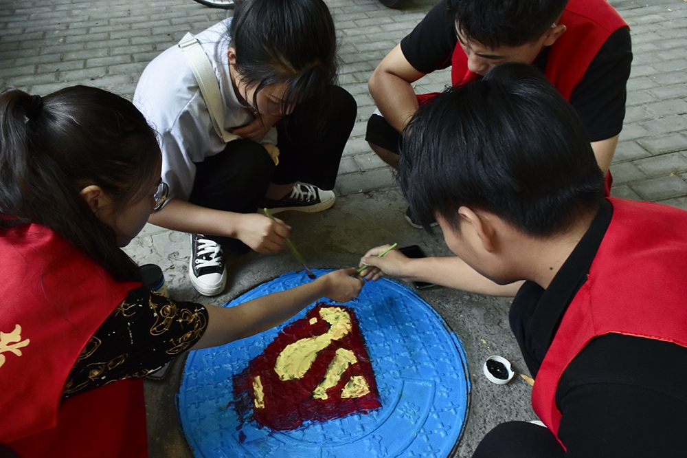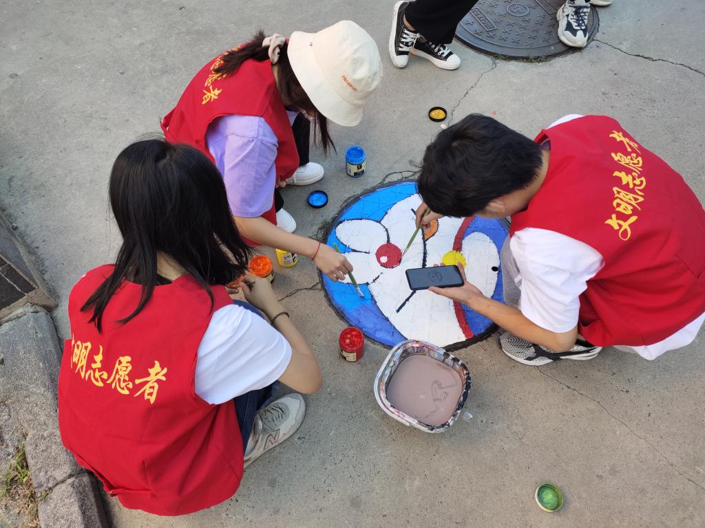 秋季学期学生陆续返校期间,为助力新乡市全国文明城市创建,为我们美丽的校园增添文化艺术氛围,艺术学院大学生们近期在校园内开展了“美丽校园,文明创建”校园井盖主题涂鸦志愿服务活动。