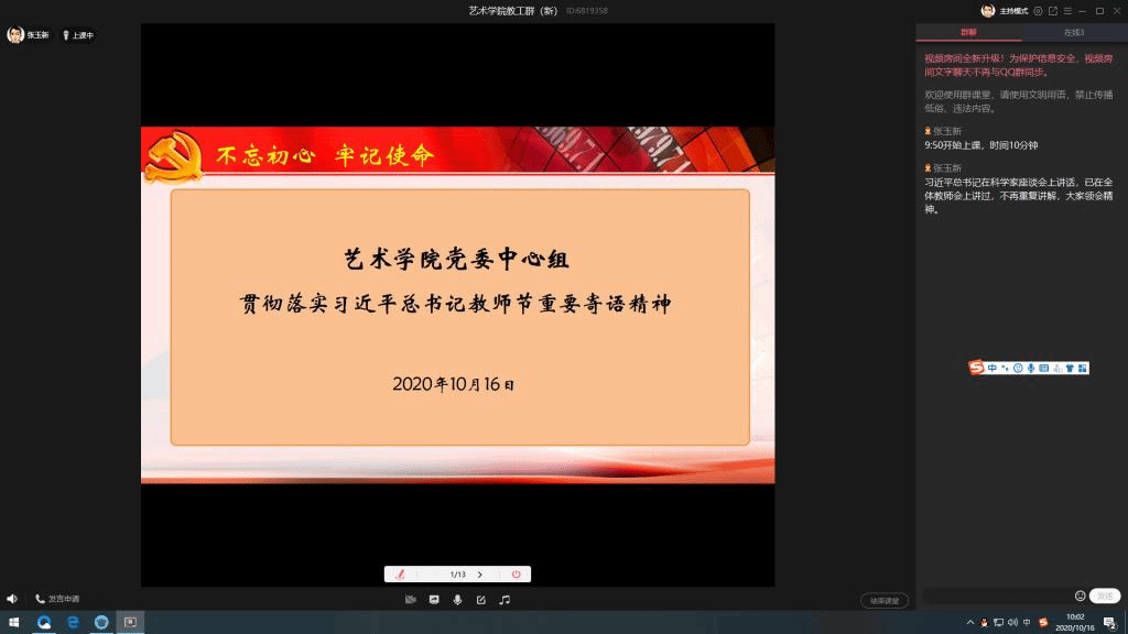10月16日上午,艺术学院党委中心组利用QQ群课堂进行集中理论学习,中心组全体成员参加群课堂学习。