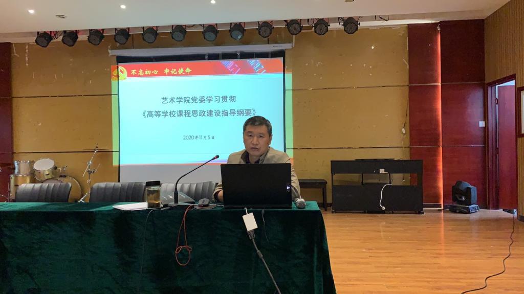 11月5日,艺术学院党委在11号楼音乐厅组织召开全体教工学习会,专题学习教育部印发的《高等学校课程思政建设指导纲要》等重要文件。艺术学院全体教职工出席了此次学习会。学习会由院党委书记张玉新主持召开。