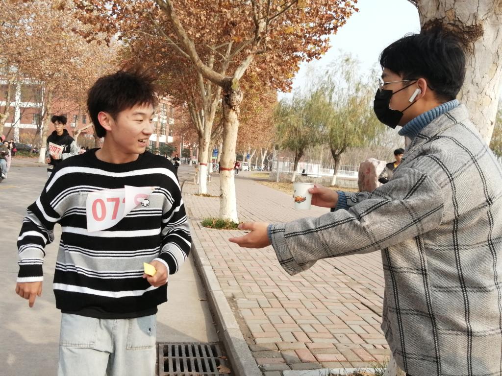 赛前,体育部部长吴璇玥宣读了比赛要求,张老师着重强调了比赛中的安全问题,徐书记做了赛前动员,并带领参赛同学们一起做热身运动。随着裁判刘老师一声令下,比赛正式开始。艺术学子们不畏严寒,顽强拼搏,选手们相互鼓励,却又不甘示弱,体现了同学们之间友爱和睦的情谊;志愿者们贴心的准备好一杯杯热水,随时为选手们提供暖心服务;赛场两侧,师生们的加油声、呐喊声、助威声此起彼伏,将越野赛推向了高潮。