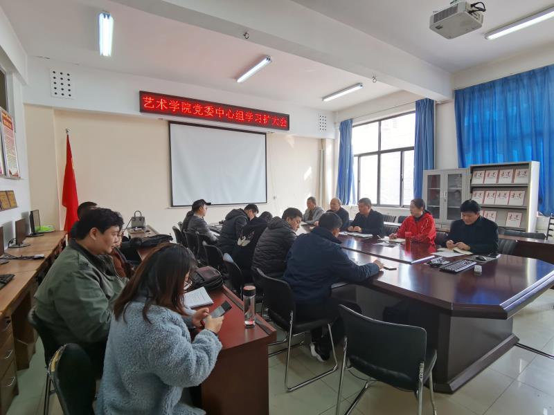3月4日,艺术学院在11208会议室召开党委中心组学习扩大会,艺术学院党政班子、科级干部、教研室主任共计20余人参加了会议,会议由艺术学院党委书记张玉新主持。