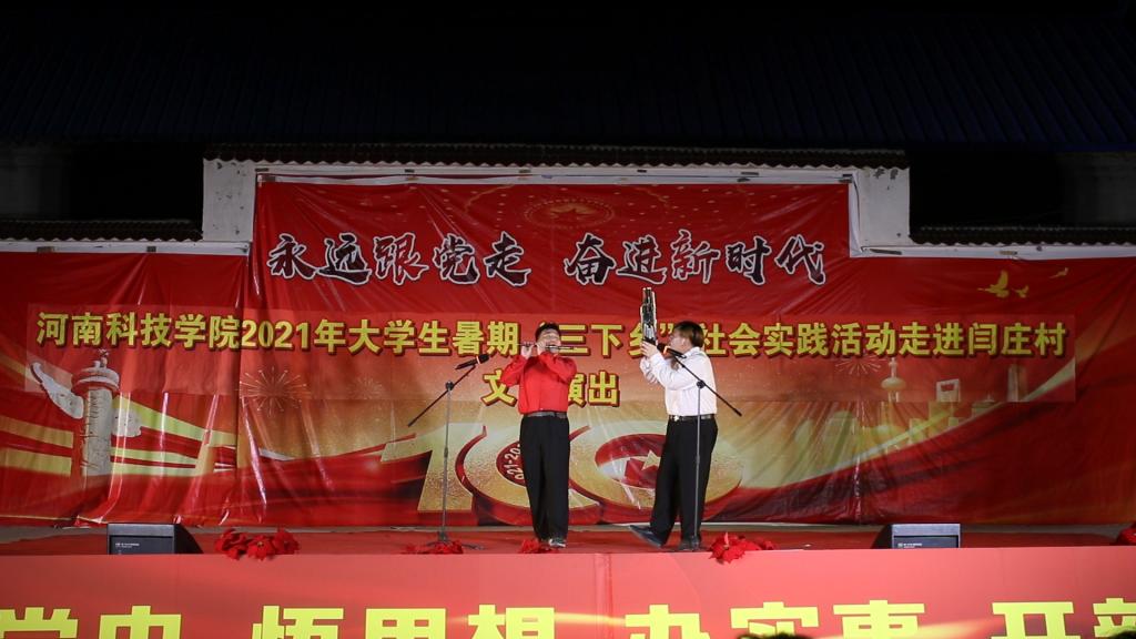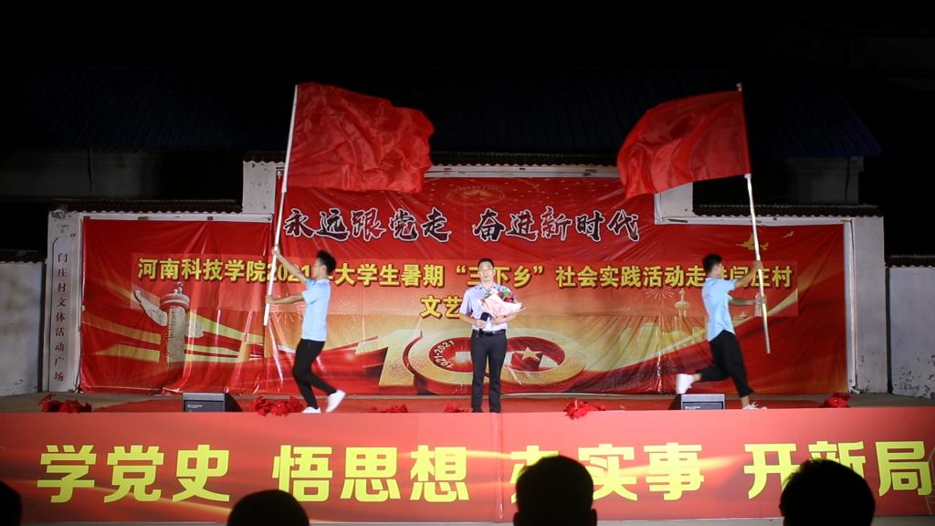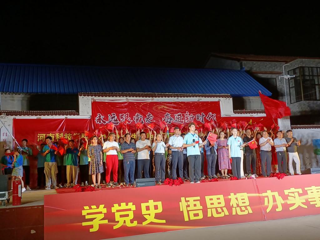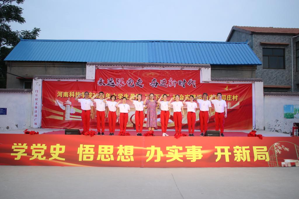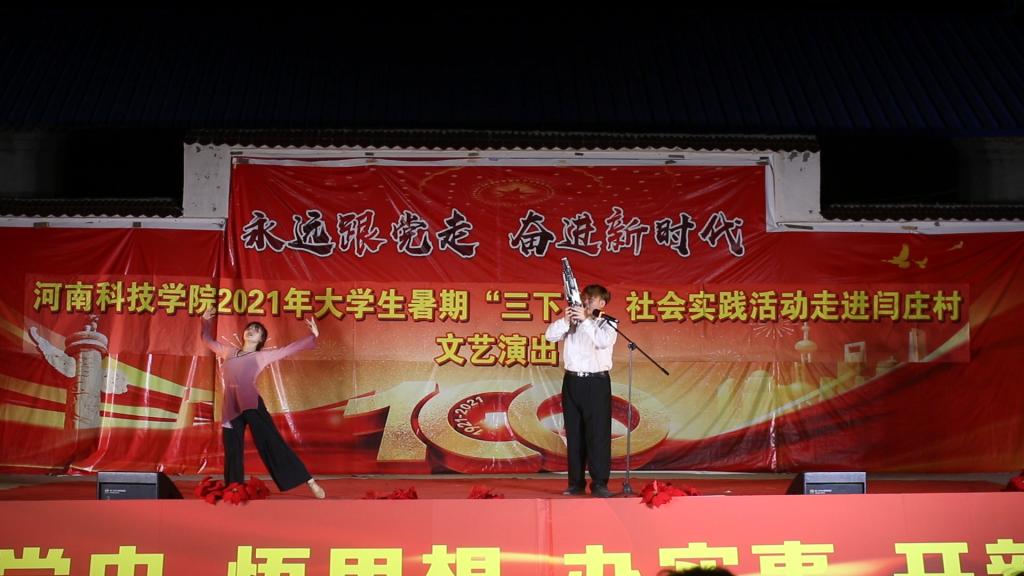 7月10日,艺术学院跟随学校来到校对口帮扶的封丘县闫庄村,参与“永远跟党走,奋进新时代”党史教育主题文艺汇演,学院党委副书记徐小玉、专业教师何甲麒、游德存以及学生代表共20余人参与了演出活动,全校师生代表及闫庄村村民观看了演出。