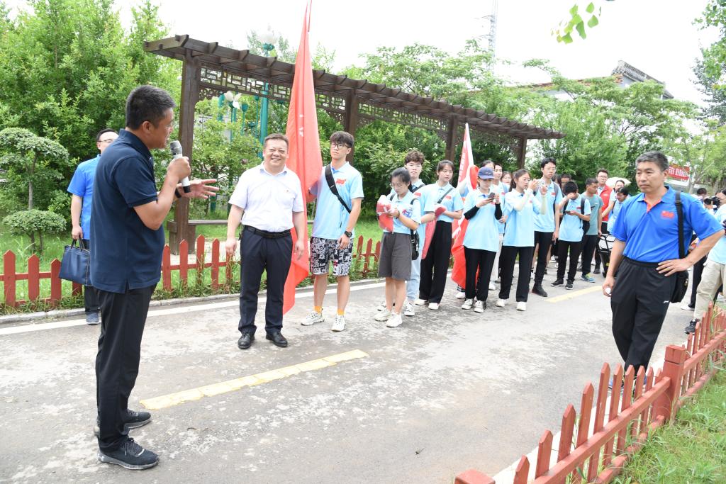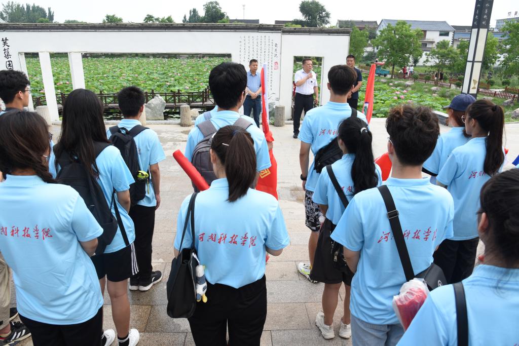 7月12日,艺术学院“小我融入大我,青春献给祖国”社会实践团在学院党委副书记徐小玉和辅导员张腾玮的带领下,前往省内新农村积极开展暑期“三下乡”社会实践活动。上午,在省级“美丽小镇”长垣市赵堤镇芙蕖园,师生们参加了学校和赵堤镇举办的社会实践活动启动仪式,听取了赵堤镇镇长王学明介绍的赵堤镇依托生态资源、水资源、人力资源、红色资源优势,抓住乡村振兴战略政策机遇,把远近闻名的贫穷小镇打造成为基础设施完善、功能配套齐全、环境优美、富有特色的美丽小镇的奋斗过程。接着,社会实践队员们参观了小渠惨案红色教育基地,聆听了讲解员对“小渠对日狙击战”“小渠惨案”“滨河县委”等历史的讲解,接受了一堂生动的爱国主义教育课。随后,社会实践队员们来到乡村振兴讲学堂,参观考察社会主义新农村党建示范带。下午,社会实践队员们来到大浪口古镇景区、丁栾镇关路西村,实地感受乡村振兴的建设成果。
