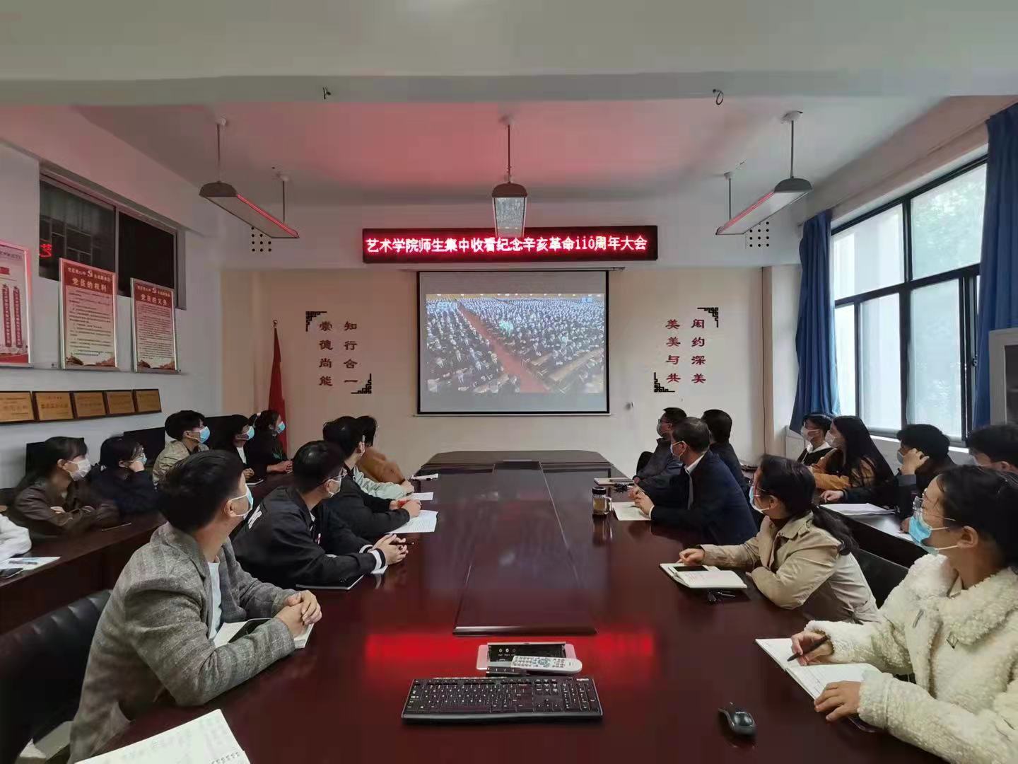 10月9日上午,纪念辛亥革命110周年大会在北京人民大会堂隆重举行。中共中央总书记、国家主席、中央军委主席习近平出席大会并发表重要讲话。艺术学院部分师生在11楼208室观看大会盛况,共同庆祝辛亥革命110周年。