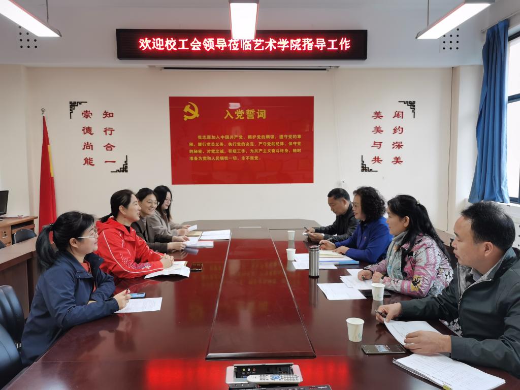 近日,为进一步推动“师带徒”工作的开展,艺术学院在11号教学楼208会议室举行“师带徒”年度考核工作会议。校工会副主席马海燕、外国语学院分会主席龚俊朋、继续教育学院分会主席张红岩、机关二分会主席徐武及学院“师带徒”结对教师等十余人参加了会议。会议由艺术学院分会主席徐小玉主持。