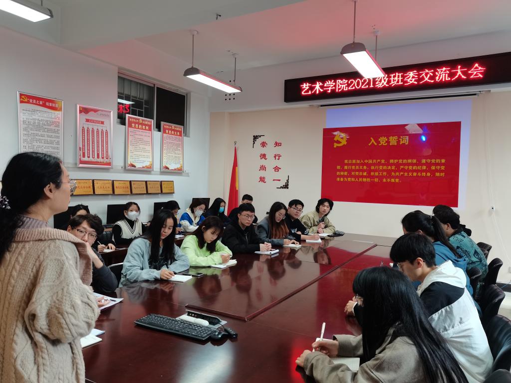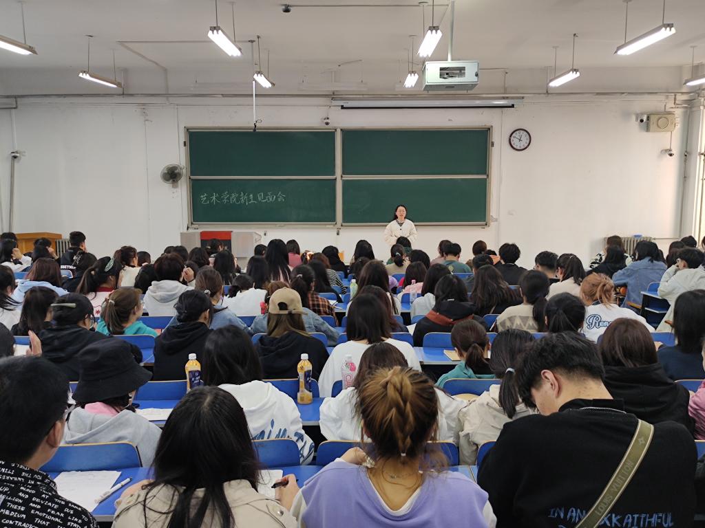 开展理想信念教育,做好思想政治教育与价值引领,艺术学院在8合二教室分批召开新生见面会,见面会主要内容有:一落实学校疫情防控要求,提升政治觉悟;二开展专业规划教育,向学生介绍学院的专业设置及发展前景,成立专门领导小组,认真做好新生入学资格审查工作;三开展校规校纪及基础文明教育,通过辅导员领学、班委带学、个人自学相结合的方式,组织新生认真学习《学生手册》,把学校规章制度内化为自觉行动;四开展心理健康教育,组织了“凝心聚力,一心一艺”2021级新生拔河比赛,分批带领新生参观心理中心并开展素拓活动,帮助新生培养理性平和心态;五开展安全教育,及时召开宿舍安全宣讲员培训会、新生安全教育专题讲座,进行防诈知识测试,指导全体21级学生签订了“防范电信网络诈骗承诺书”,并下载“国家反诈中心”APP,抓牢宿舍安全和防范电信网络诈骗安全。