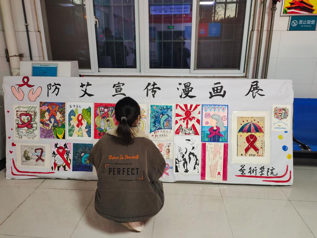 学院采用朋辈教育的方式,从普通学生中挑选出学生宣讲员,经过校医院专家集中培训后,宣讲员利用多媒体教程开展进班宣讲活动,确保了防艾宣讲全覆盖。为了调动学生参与活动积极性,学院以班级、宿舍组队合作与个人独创相结合的方式开展了书画作品大赛,并选出40余副优秀作品进行展出。艺术学子们结合所学专业,以生动形象、发人深省的漫画和书法作品直接揭露艾滋病毒的危害性,提醒同学们艾滋病离我们并不遥远,要学会爱护自己,告诫同学们勿用有色眼镜看待艾滋病人,既远离“艾”又拥抱爱。