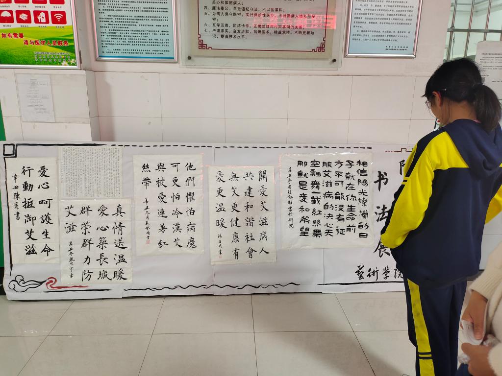 12月1日,在第34个“世界艾滋病日”来临之际,艺术学院在校医院的指导下,以“终结艾 拥抱爱”为主题,结合学生专业特点组织开展了防艾知识宣讲、书画展和视频征集等主题宣传活动。