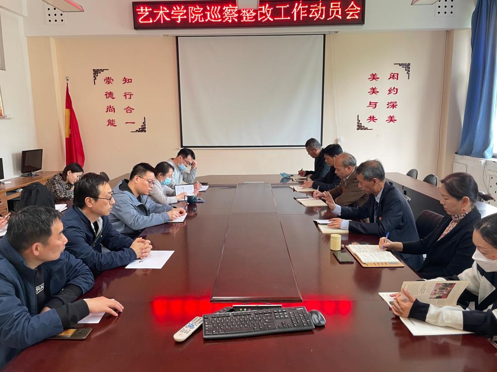4月21日下午,艺术学院党委在11208会议室召开校党委第四轮巡察第一巡察组巡察艺术学院党委反馈意见整改工作动员会,艺术学院班子成员、党支部书记、办公室主任、教学秘书、科研秘书、研究生秘书、辅导员等10余人出席会议,会议由学院党委书记张玉新主持。