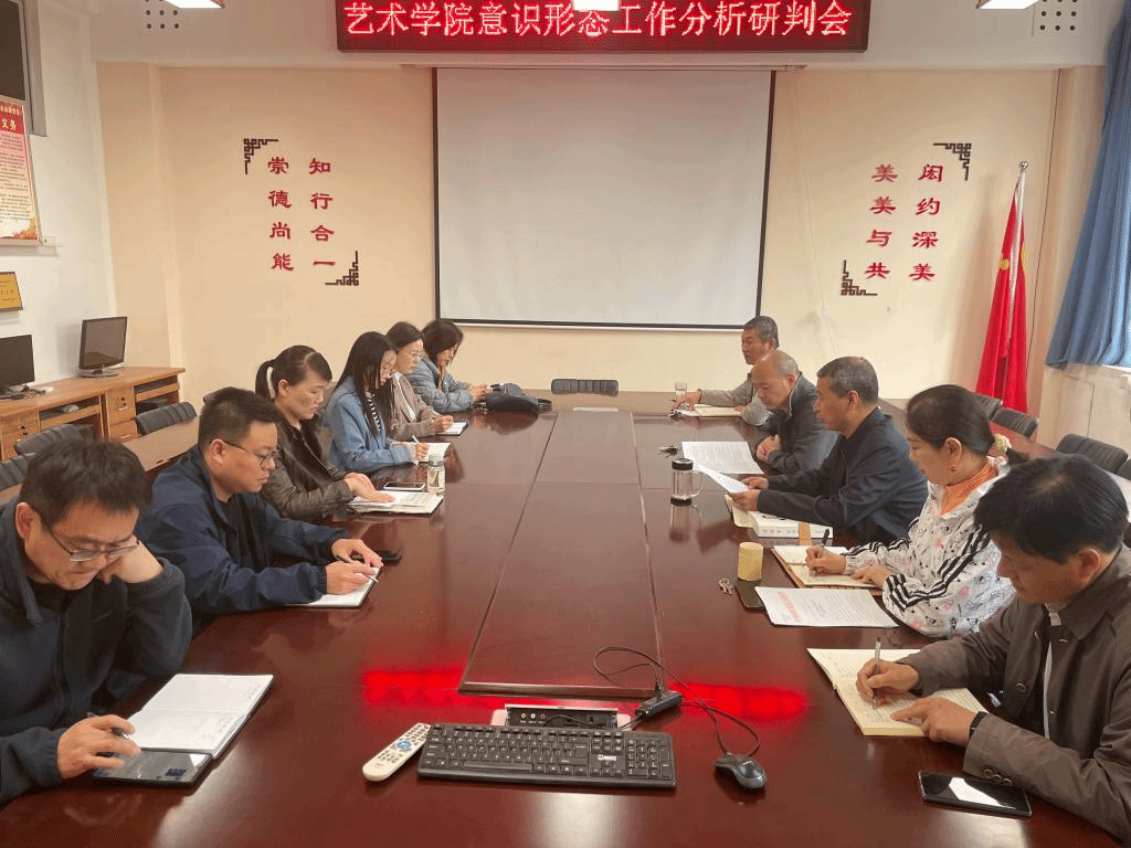 10月8日,艺术学院党委在11号楼208会议室召开意识形态工作分析研判会。学院全体处级干部、党委委员、党支部书记、辅导员、教学秘书、科研秘书、研究生秘书共计10余人参加了会议,会议由院党委书记张玉新主持。