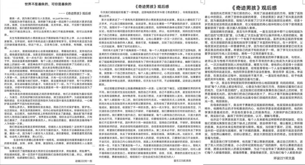 5月20日至25日,美术与设计学院、音乐与舞蹈学院成功举办心理电影赏析观影感悟活动。通过集体观影的活动方式,营造积极班级氛围,增强班级凝聚力,有利于学生形成良好的心理健康观念。同学们纷纷表示收获满满,在观影结束后写下了自己的感悟。