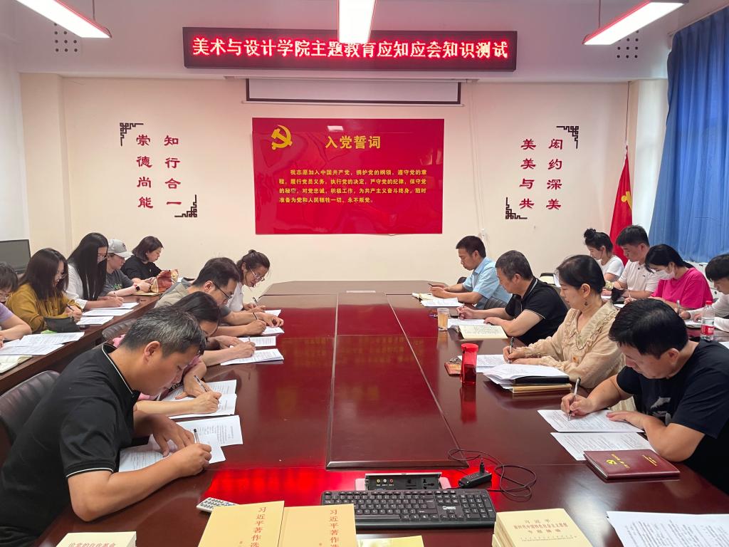 为扎实开展学习贯彻习近平新时代中国特色社会主义思想主题教育,6月15日下午,美术与设计学院在11#208会议室开展应知应会知识测试,学院全体教师党员及学生党员代表共20余人参加了测试。
