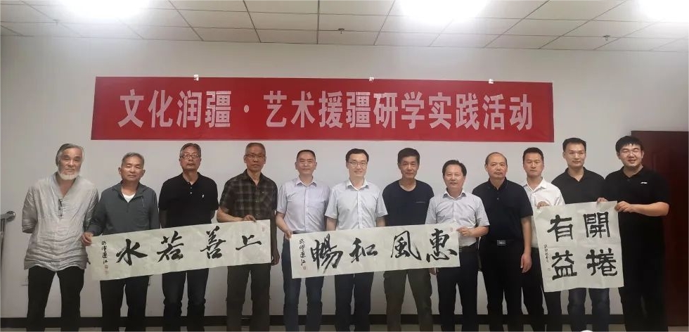 活动期间,河南文化艺术代表团还前往我省第十一批援疆干部驻地,为援疆干部创作书画作品。我校张新词教授发挥自身优势,泼墨挥毫,有求必应,把对援疆干部的崇敬之情倾注笔端,为援疆干部创作书法作品50多幅,用艺术的方式向援疆干部致以诚挚的问候和美好的祝愿。