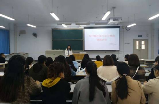 毕业生实习就业大会的召开,协助同学们端正态度,充分做好实习工作的思想准备,将实习的具体安排传达给毕业生,为2019届毕业生顺利完成实习工作打下基础。