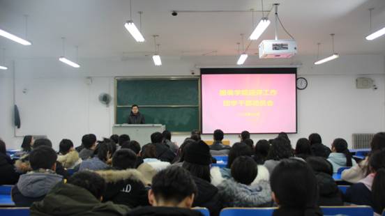 12月5日17:50,服装学院在八合三教室举行迎评工作团学干部动员会。服装学院党委书记张平、党委副书记王琳、团委书记董华明、团委副书记梁瑞、辅导员张小雪、团委学生会干部及团支书、班长、学习委员等一百余人参加,团委书记董华明主持动员会。