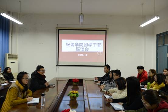 12月24日19:00,服装学院在11#204召开团学干部座谈会。服装学院党委副书记王琳、团委书记董华明、辅导员张小雪及50余名团学干部参加了座谈。