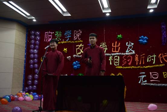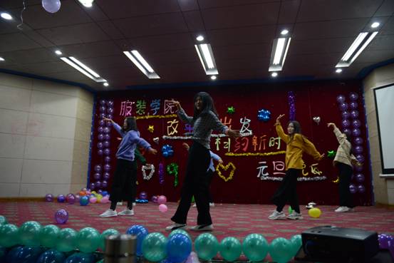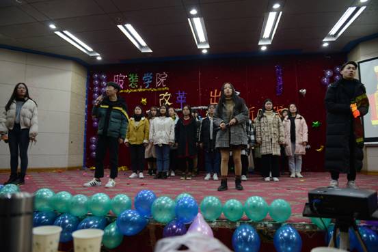 12月21日晚七点,服装学院“相约新时代 改革再出发”主题元旦晚会在图教201举行,服装学院党委书记张平、党委副书记王琳、团委书记董华明、团委副书记梁瑞、辅导员张小雪及200余名学生欢聚一堂,共迎新春。