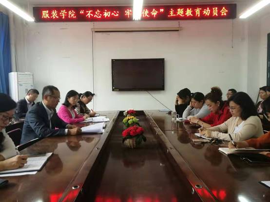9月12日下午,服装学院党委在11号楼204会议室举行“不忘初心、牢记使命”主题教育动员会,党委书记张平、院长常丽霞、党委副书记王琳、副院长李爱英及二十余名党员干部参加了会议。