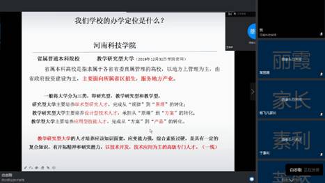 白志刚教授从服装学院的办学定位开始,分析当前新乡市及周边服装产业形势和服装企业岗位需求,思考校企合作新模式,探讨服装学院专业建设和人才培养目标,理清服装学院课程体系构建思路,构建了人才培养课程体系。报告结束后,白志刚教授与学院老师在钉钉直播中频繁互动,就一流专业建设、人才培养方案修订、人才培养特色等方面积极讨论,气氛热烈,白教师针对老师们提出的问题做了一一解答。